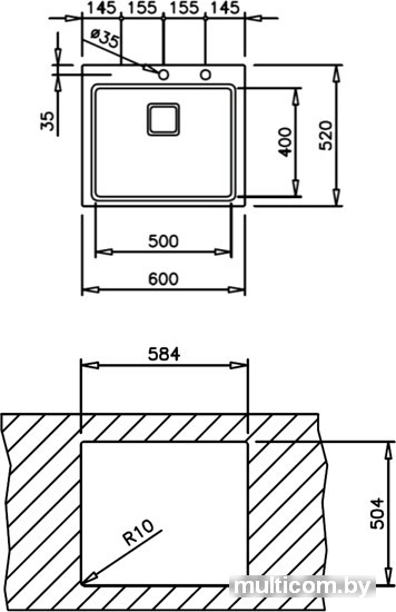 | Комплектация | квадратный корзинчатый слив на 3 1/2” с клапаном-автоматом, декоративная квадратная пластина для слива, сливная арматура, крепежи, алюминиевый профиль прикреплен к периметру мойки |