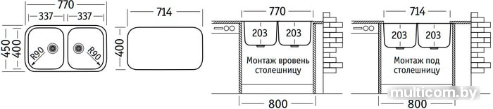 Способ установки | врезная под столешницу, врезная вровень со столешницей |