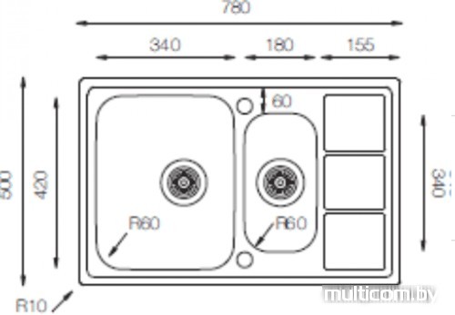 | Ширина мойки | 78 см |