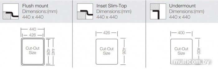 | Способ установки | врезная на столешницу, врезная под столешницу, врезная вровень со столешницей |
