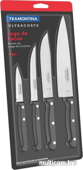 | Комплектация | - нож для овощей 7,5 см - нож для стейка 12,5 см - нож для раздедки мяса 15 см - поварской нож 17,5 см |