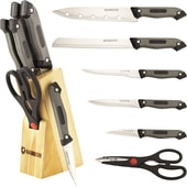 набор ножей (5 шт), универсальный/поварской/для очистки овощей/для хлеба/обвалочный, материал: нержавеющая сталь/бакелит (пластик), в комплекте кухонные ножницы, подставка