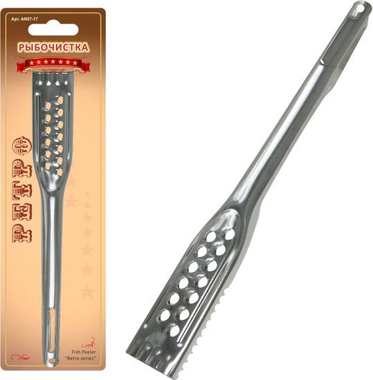 | Информация | Рыбочистка — это отличная необходимая вещь на кухне. Данная модель выполнена из качественного материала и прослужит вам многие годы. Теперь вы с легкостью сможете очистить любую рыбу от чешуек. |