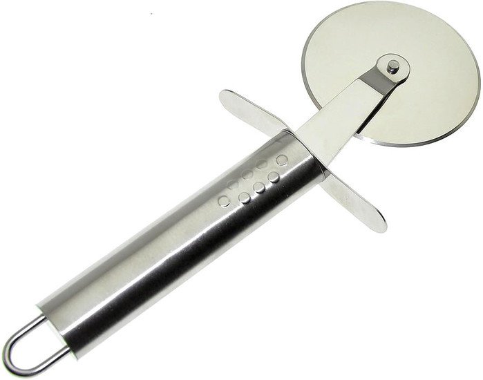 | Информация | Нож для пиццы — идеальное приспособление для нарезания пиццы и заготовок из теста. Дисковый нож с острым лезвием поможет вам без труда разрезать не только готовую пиццу, но и сделать заготовки из теста для приготовления чебуреков, равиоли, пельменей. Пиццерезка изготовлена из коррозионностойкой (нержавеющей) стали. После применения рекомендуется мыть мягкой щеткой с использованием жидких моющих средств. Для удобства хранения на крючке предусмотрена петелька. |