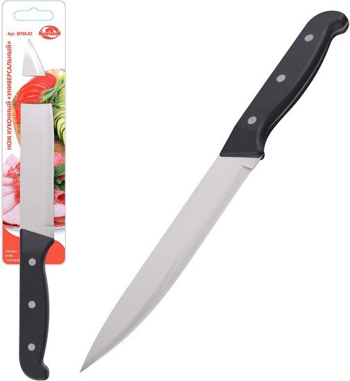 | Информация | Это самый популярный нож на любой кухне, готовить с ним одно удовольствие. Ножиком удобно чистить и резать овощи или фрукты. Готовите завтрак – этот нож нужен, чтобы отрезать колбасу, сыр, масло, лимон. Подойдет для разделки мяса и рыбы, замороженных полуфабрикатов. Легкий, удобный, многофункциональный. Этот нож станет незаменимым кухонным помощником. |