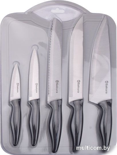 | Информация | - Набор ножей Sakura SA-KN02S предназначен для приготовления различных блюд из мяса, птицы, рыбы, овощей и других продуктов. - Удобные и практичные ножи облегчат процесс приготовления пищи. - В комплекте также имеется пластиковая разделочная доска для удобства приготовления. |