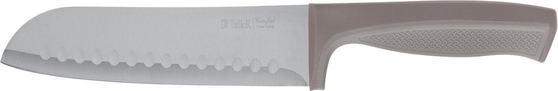 | Информация | - Подходит для нарезки мяса, рыбы, овощей и других целей. Длина лезвия - 17,5 см. Ширина лезвия - 4,5 см. Толщина лезвия - 1,8 мм. - Лезвие ножа сделано из высококачественной коррозионностойкой стали AISI 420S45 (3Cr13). - Рукоять выполнена из ударопрочного пластика с силиконовой вставкой для удобства хвата и предотвращения выскальзывания. Цвет рукояти - коричневый, силиконовой вставки - светло-коричневый (бежевый). - В комплекте с ножом идет чехол из твердого безопасного пластика (PP). Цвет чехла сочетается с цветом рукояти. Благодаря чехлу нож можно безопасно хранить, а также удобно взять в поход, на пикник, дачу и др. - Используйте для заточки точилки TalleR или аналогичные (или точильные камни, мусаты). - Вес ножа - 140 г, с чехлом - 167 г. - Рекомендуется ручная мойка. |