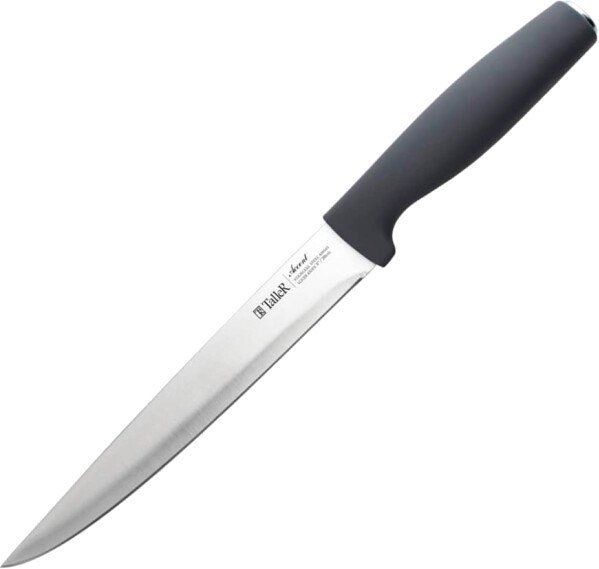 | Информация | - Идеален для нарезки овощей, фруктов и зелени, а также сырого и вареного мяса, разделки курицы и рыбы. С ним легко справиться с арбузом и дыней. - Длина лезвия составляет 20 см, а его толщина — 1,7 мм. Лезвие изготовлено из высококачественной нержавеющей стали AISI 420S45, что обеспечивает долговечность и надежность. - Ручка ножа выполнена из ударопрочного пластика с приятным на ощупь покрытием soft-touch, что делает его удобным в использовании. - Для заточки рекомендуется использовать точилки TalleR или аналогичные, а также точильные камни и мусаты. Рекомендуется ручная мойка для сохранения качества. |