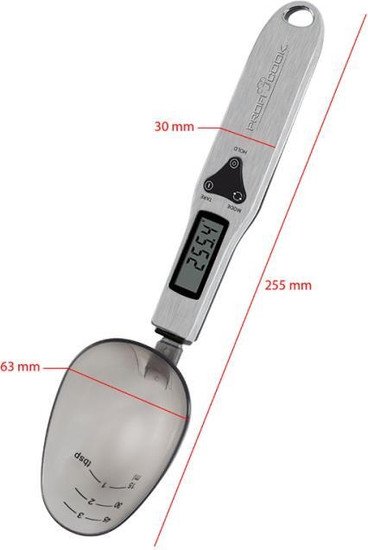 Информация | ? Кухонные весы-ложка Profi Cook PC-LW 1214 изготовлены из нержавеющей стали с пластиковой платформой. ? ЖК-дисплей отображает массу до 300 г с погрешностью 0,1 г. ? Минимальный вес для измерения составляет 0,1 г. ? В комплекте съемная чаша с мерной шкалой. ? Ручка оснащена петлей для подвешивания. ? Функция сброса массы тары и опция памяти предыдущего результата измерения. ? Возможность перевода единицы измерения из граммов в унции. ?? Встроен индикатор разрядки элемента питания. ? Работает от двух батареек типа ААА. ? Вес модели составляет 90 г, габариты — 25,5х6,3 см. |