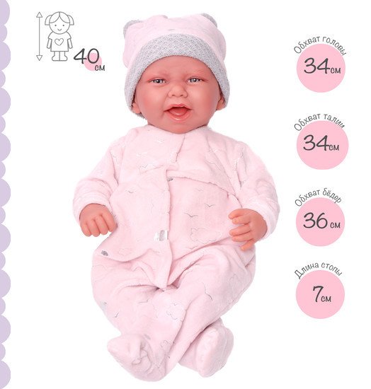 | Комплектация | Кукла, комбинезон, шапка, соска, матрас |