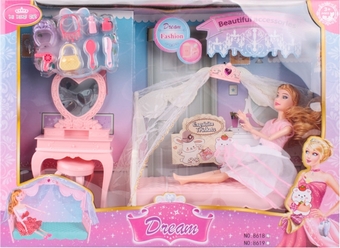 | Информация | Большой набор мебели: спальня с куклой Барби, кровать и трюмо. Обратите внимание! Внешний вид товара зависит от партии поставки. |