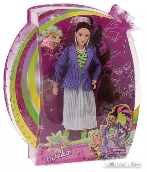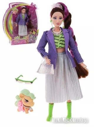 | Информация | ? Эта модница всегда в курсе последних трендов и новинок, ее стильный наряд и аксессуары создают неповторимый образ. В комплекте с куклой идут: яркий топ, средней длины юбка, лавандовый жакет с черной вертикальной полоской, неоновые сапоги, серьги, двойное колье, сумочка, очки и фигурка питомца (единорожка). |