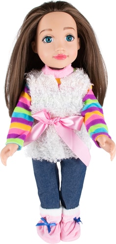 | Информация | Кукла "Полина" - это очаровательная русоволосая девочка с длинными прошитыми волосами, которые ребенок сможет расчесывать и делать косы и прочие прически. Куколка выглядит стильно: на ней узкие синие джинсы, полосатый джемпер и кудрявая безрукавка с пояском. |