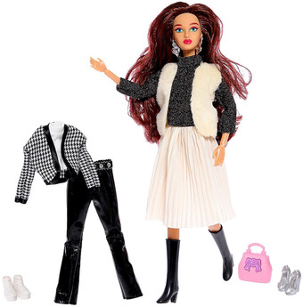 | Комплектация | 3 пары обуви, сумка, 2 кофты, юбка, штаны, укороченный кардиган, меховая жилетка |