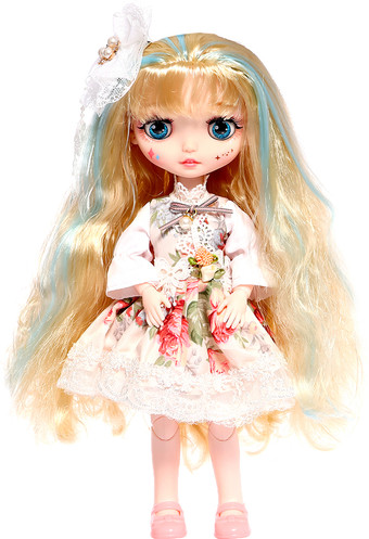 | Информация | ? Кукла Happy Valley Любимая подружка 10136843 с прошитыми волосами по всей голове и шарнирами везде, кроме стоп. ? Глазки закрывает в горизонтальном положении и имеет звуковые эффекты: поет песню про алфавит, говорит сгороговорку и рассказывает анекдот. ?? Светится кнопка на груди. |