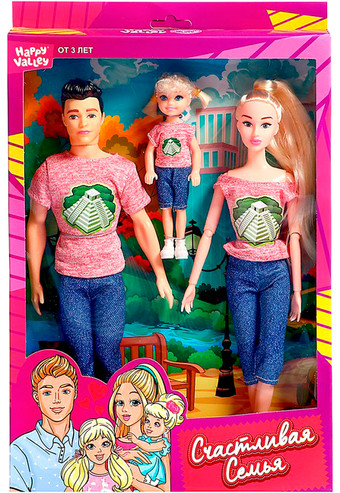 | Информация | Порадуйте свою дочку целой кукольной семьей. В наборе есть кукла-мама шарнирная, кен не шарнирный и дочка. Ваша девочка с удовольствием подружится с куколками, будет о них заботиться и осваивать социальные роли и модели поведения. |