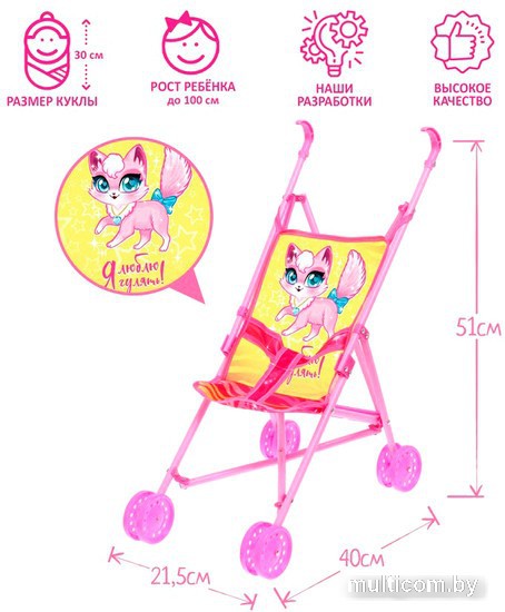| Информация | Катая куколок в коляске, маленькие леди учатся заботе и ответственности, при этом у них развиваются воображение и эмоциональное восприятие. Подходит для куколок размером до 32 см. |