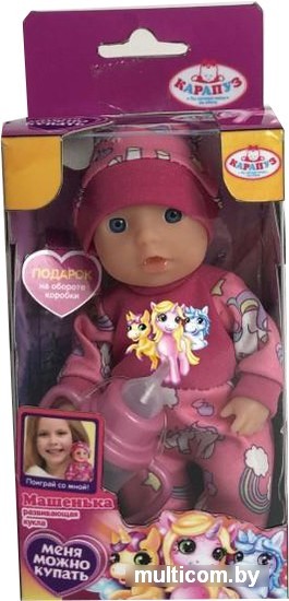 | Информация | Этот милый пупс, с детально проработанным личиком, обязательно понравится вашей малышке. Куколка одета в яркий комбинезон с милым принтом и шапочку в тон. Одежда легко снимается и надевается. Очаровательная кукла непременно вдохновит вашу принцессу на множество новых сюжетов для игр. Благодаря компактному размеру, её можно повсюду брать с собой. |