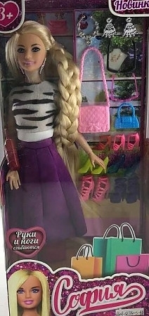 | Информация | Кукла «София» станет прекрасным подарком для вашей принцессы: руки и ноги сгибаются. В комплекте: 3 сумочки, 6 пар обуви, 2 пары очков, колье, серьги. Модница-София одета в белый топ в черную полоску и пышную фиолетовую юбку. Образ куколки дополняют модные крупные серьги и элегантная сумочка. Одежду и аксессуары легко снять и надеть. С такой модной куклой девочке будет интересно и весело играть: благодаря тому, что руки и ноги куклы подвижны, им можно придать любое положение. У Софии длинные красивые волосы, которые хозяйка куклы сможет заплетать в разные прически. Детально проработанный дизайн игрушки вдохновит девочку на новые игровые сюжеты. Игра с куклой развивает: чувство стиля и вкус; речь; воображение; социально-коммуникативные навыки. |