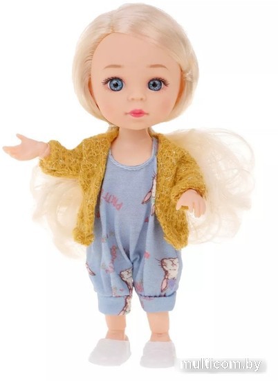 | Информация | ? Кукла Наша игрушка 91033-E - идеальная игрушка для развития воображения, речевых и коммуникативных навыков девочек. ? Симпатичная куколка в голубом комбинезоне и горчичном кардигане станет отличной подружкой для вашей девочки. ? У куклы большие голубые глаза и шелковистые волосы цвета блонд. ? Шарнирные руки и ноги (12 точек артикуляции) позволяют задавать кукле разные положения для игры. ?? Съемные элементы одежды: комбинезон (застегивается сзади на липучку), туфельки. |