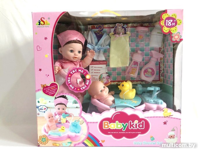 | Комплектация | Кукла – 1 шт., пупс – 1 шт., аксессуары (бутылочка для куклы, ванна, уточка для купания, халат, полотенце, 2 емкости, бутылочка с ручками для пупса и бутылочка с «молоком»). |