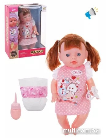 | Информация | ? Подарите девочке игровой набор «Мой малыш» и исполните мечту маленькой принцессы. ? Вместе с предметами набора игра в дочки-матери станет увлекательнее для любимой всеми девочками. ? У куклы твердое тельце, подвижные ручки и ножки, она умеет пить воду и писать, воспроизводит слова («мама», «папа») и реалистичные звуки (плачет). ?? Перед игрой необходимо удалить заглушку. ? В комплекте с куклой идут аксессуары: бутылочка, подгузник и пустышка. |