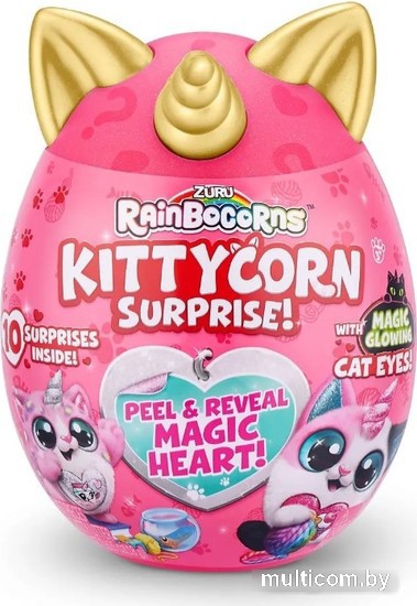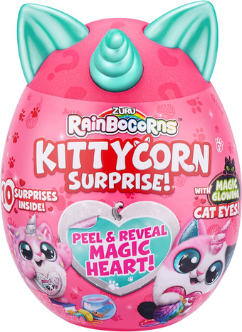 | Комплектация | 1 яйцо Kittycorn; 1 плюшевый Kittycorn; 1 яйцо Бу-Букорн; 1 яйцо Китти Бу-Букорн; 1 набор наклеек Kittycorn; 1 состав для кошачьего туалета; 1 волшебное сердце Rainbocorns; руководство для коллекционеров. |