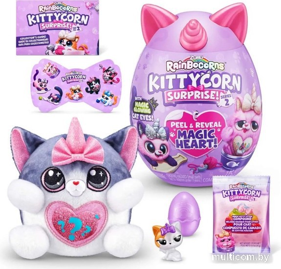 | Информация | ? Знакомьтесь с очаровательными котятами Rainbocorns Kittycorn Surprise! ? Их глаза светятся в темноте, а волшебное сердечко подскажет, что любит ваш питомец! ? Внутри 10 сюрпризов, включая наполнитель для кошачьего туалета и наклейки! ?? Успейте усыновить всех котят, включая редкого с большим бантом! |