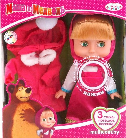 | Информация | Эта кукла сразу же станет вашей дочке подружкой, так как она выполнена в виде персонажа мультипликационного фильма – Маши. Типичный для данной героини наряд, а также песенка и стишки, которые она расскажет своей будущей хозяйке станут прекрасной тренировкой для ее памяти и развеселят малышку.Особенности:- Данная игрушка подходит девочкам от трехлетнего возраста и старше.- Она представляет собой куклу, выполненную в виде Маши, известной героини популярного детского мультсериала Маша и Медведь, который рассказывает про озорную и непослушную девочку, постоянно попадающую в какие-то казусные ситуации.- Кукла имеет размер 25 см, благодаря которому ее будет удобно использовать в качестве подружки, которую можно везде брать с собой.- У куклы подвижные конечности, которые позволяют менять ей позы, чтобы данная героиня могла более реалистично выглядеть в процессе игрового сюжета. Глаза куклы закрываются в горизонтальном положении, имитируя сон.- У Маши большие зеленые глаза, русые волосы с челкой, спрятанные под косынкой, а также малиновый сарафан, который носится с рубахой с длинными рукавами и голубой окантовкой по краю.- Куклу можно причесывать, а также использовать для разнообразных сюжетных игр. В комплекте с ней также поставляется комплект зимней одежды.- Кукла оснащена звуковым модулем, благодаря которому удастся прослушать 3 стишка-потешки, а также песенку из упомянутого выше мультфильма. |