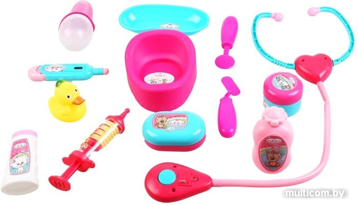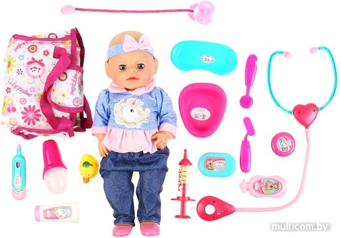 | Комплектация | - набор доктора: лоток для инструментов, градусник, стетоскоп и др.- набор аксессуаров для ванны (имитация): шампунь, гель для душа, мыло, детская присыпка- соска- горшок- сумочка |