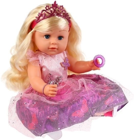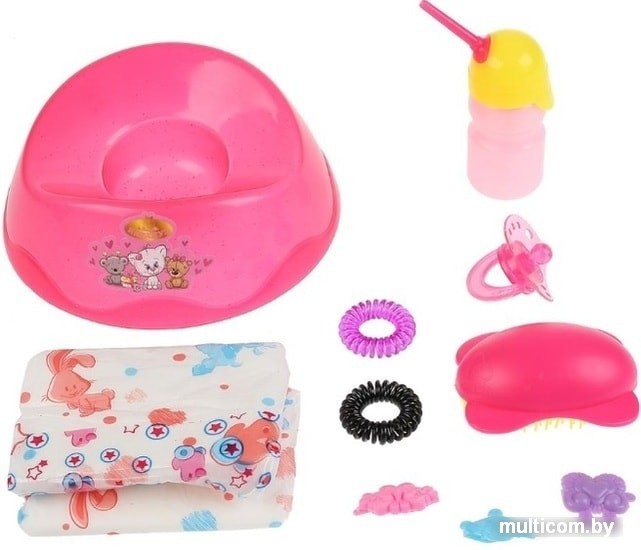 | Комплектация | горшок, бутылочка, расческакукла, соска, горшок, бутылочка, свидетельство о рождении, подгузник, 2 заколки и 2 резинки, обувь, расческа |
