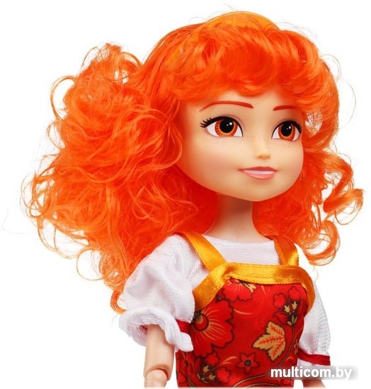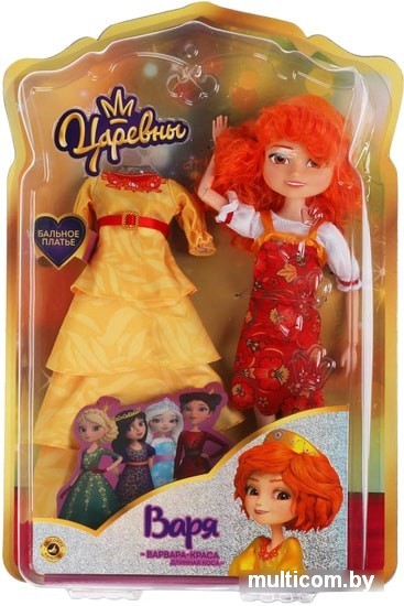 | Информация | Варя одета в красивый сарафан и стильную блузку, в точности как героиня мультфильма. В комплекте с куколкой так же красивое бальное платье в жёлтых тонах с интересным принтом, оранжевой лентой и декоративным воротником. Одежду легко снять и надеть. Лицо куклы детально проработано. Блестящие, шелковистые волосы царевны уложены в замысловатую причёску - при желании, их можно расплести и создать для куклы совершенно новый образ. |