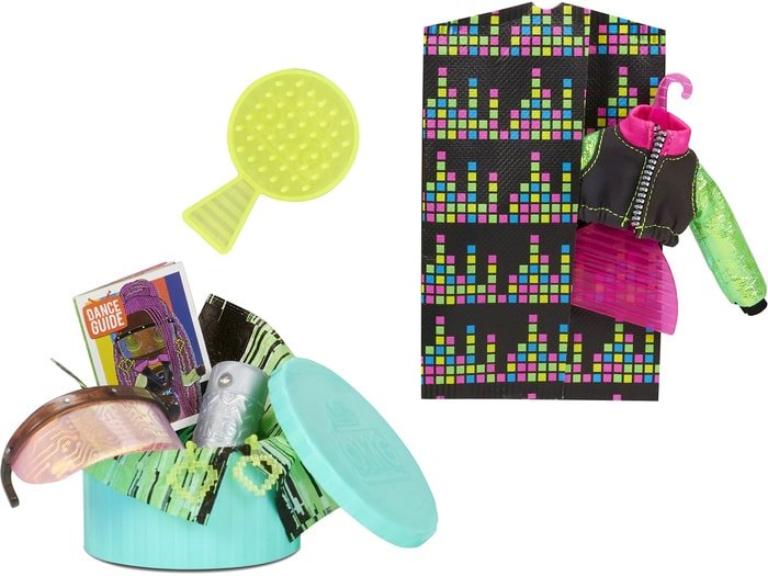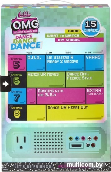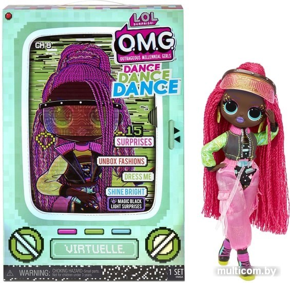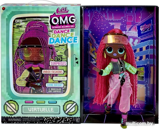 | Информация | Кукла L.O.L. Surprise OMG Virtuelle – это старшая сестра Лол из уникальной танцевальной серии Dance Dance Dance. У неё есть собственное ТВ-шоу, танцевальная VR-студия и, конечно, сногсшибательный наряд! А ещё она обладает секретом, который проявляется в темноте. Время зажигать!Коробка выполнена в виде телевизора, и у неё есть секрет. Снимите картонное изображение куклы, чтобы найти под ним голограмму-телеэкран. Подвигайте язычок туда-сюда, и Virtuelle покажет своё танцевальное движение!После распаковки коробка превращается в игровой стенд в виде виртуальной студии.Внутри вас ждут 15 сюрпризов: одежда и аксессуары, расческа, шляпная коробка и т.д.Большая модельная кукла Лол обладает детально проработанным образом, вплоть до кончиков пальцев, роскошными волосами, полностью подвижными руками и ногами.У Virtuelle есть секрет, который проявляется в темноте. Выключите свет и подсветите куклу ультрафиолетовым фонариком из комплекта. Ее наряд и прическа выглядят завораживающе! |