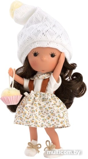 | Информация | Кукла одета в белую блузку с воротником, сарафан с мелкими цветами, шапочку с помпоном и белые туфли с бантиками. Кекс входит в комплект.Кукла изготовлена ??из мягкого винила и имеет подвижные ручки, ножки и голову. Кукла упакована в декоративную картонную коробку в виде красочного домика. |