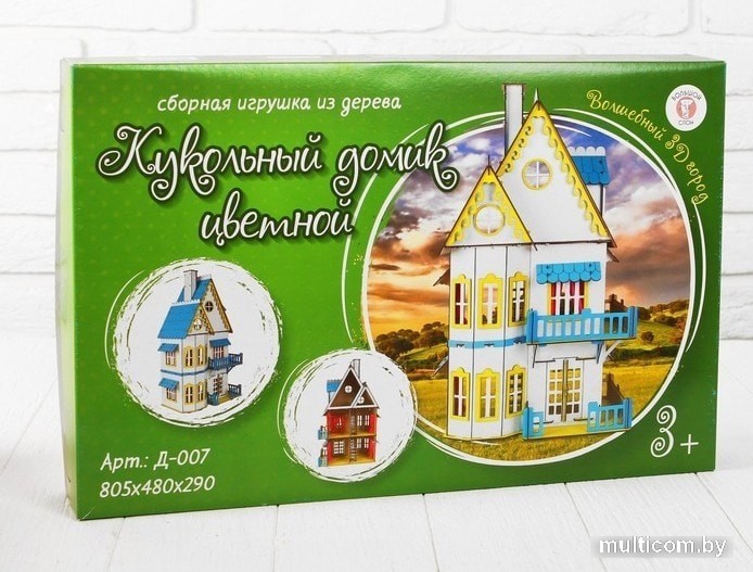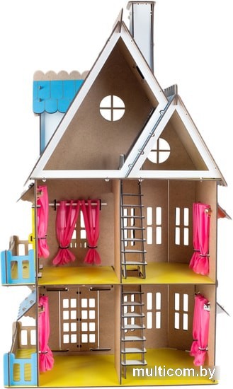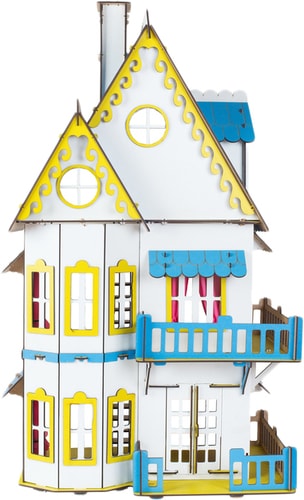 | Информация | Кукольный домик представлен в виде деревянного конструктора, собрав который, девочка получит двухэтажную конструкцию. Коттедж спроектирован так, чтобы игровая зона частично была открытой и добраться до нужного помещения можно было без каких-либо трудностей. Домик состоит из 6 комнат. Помимо входящих в комплект розовых штор внутри домика можно разместить мебель и предметы интерьера. |