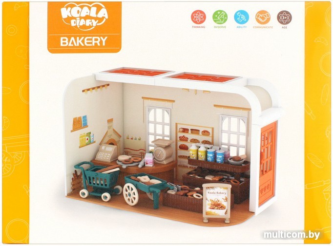 | Информация | Конструктор румбокс "Bakery" (пекарня). Основа - картонная, детали из пластика. Для детей от 3-х лет. Для игровых целей. Развивает мышление, наблюдательность, способности, общение. Размер пекарни в собранном виде: 24х14х15,5 см. |