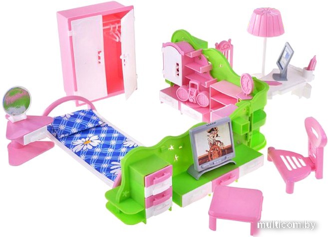 | Комплектация | игрушечная кроватка; стол; маленький столик; стульчик; лампа; тумбочка; другие аксессуары |