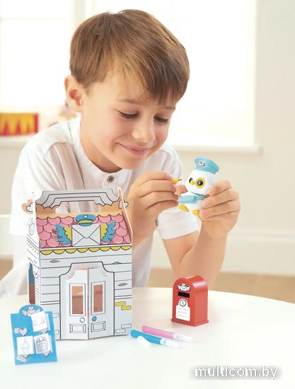 | Комплектация | - 1х Сборный домик - "Почтовое отделение" - 1х Флокированная фигурка - 3х Смывающиеся водой фломастеры - Стикеры - Аксессуары - Инструкция |