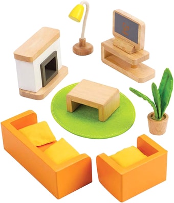 Информация | Габариты: 20х10х26 см Вес: 0,45 кг Основные характеристики: • Подходит для мини-кукол до 12 см. • Теплая и уютная гостиная, где могут собраться друзья и семья. • Включает: 1 диван, 1 кресло, 1 камин, 1 журнальный столик, 1 лампа, 1 коврик, 1 растение, 1 телевизор. |