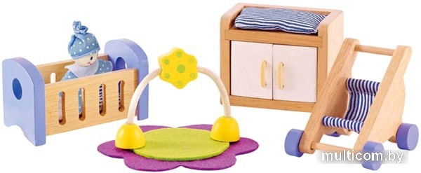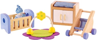 Информация | Габариты: 20х10х26 см Вес: 0,38 кг Основные характеристики: • Подходит для мини-кукол до 12 см. • Дети могут обустроить свою детскую комнату • Включает: кроватку с постельными принадлежностями, пеленальный стол, коляску, игровой коврик. |