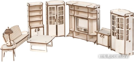 | Информация | У собранной модели открываются дверцы всех шкафчиков, при желании игрушку можно раскрасить акриловыми или гуашевыми красками.Габаритные размеры готового изделия в мм:Стенка под телевизор 112*30*118 мм.Столик 40*40*35 мм.Лампа 25*25*50 мм.Журнальный столик 66*63*30 мм.Телевизор 45*10*42 мм.Сервант 60*34*120 мм.Книжный шкаф 47*34*115 мм.Диван 100*40*55 мм.Тумбочка 55*34*48 мм. |