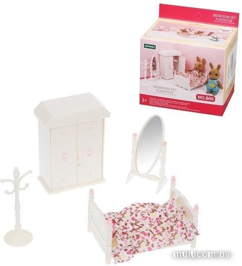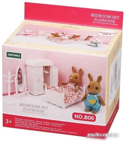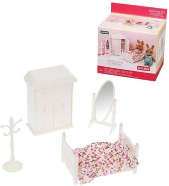 | Комплектация | включает несколько предметов: кроватку с матрасиком и одеялом, шкафчик с открывающимися дверцами, напольное зеркало, напольную вешалку и 2 вешалки-плечики |