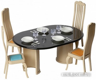 Комплектация | крышка стола - 1 шт., стойка стола - 2 шт., спинка стула - 4 шт., сиденье - 4 шт., ножка стула - 8 шт., бокалы - 4 шт., тарелки глубокие - 4 шт., тарелки мелкие - 4 шт., ложки - 4 шт., вилки - 4 шт. |