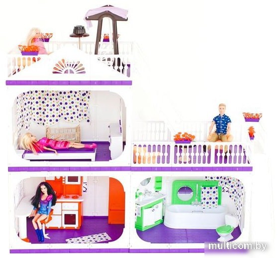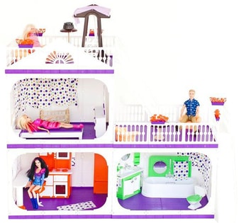 Комплектация | каркас дома, горшочки с цветами, текстильные шторы |