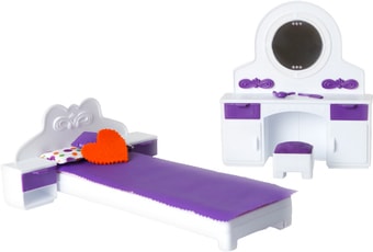 Информация | Очень стильный и яркий набор кукольной мебели "Спальня" станет прекрасным украшением кукольного домика. Миниатюрная кровать выглядит как настоящая. Особую достоверность добавляют выдвижные ящики у двух прикроватных тумб и в трюмо. |
