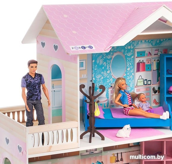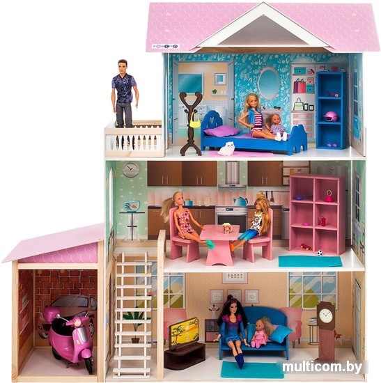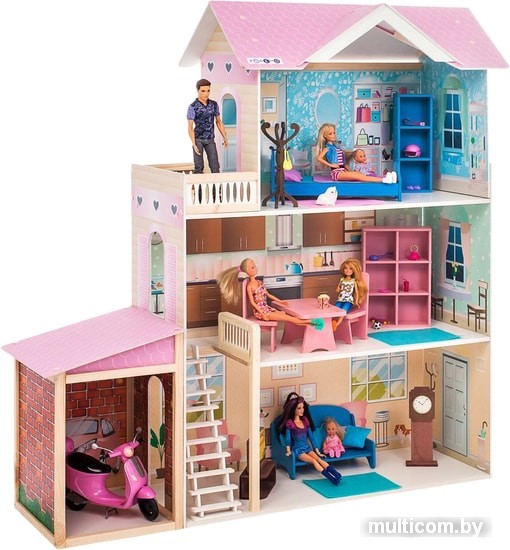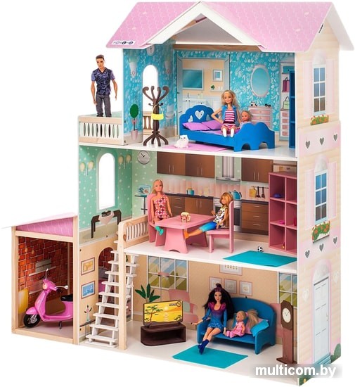 | Информация | Домик, выполнен в современном стиле, в нежно розовом цвете, благодаря которому домик кажется воздушным. Игрушку отличает нежный, пастельный принт по дереву внутри дома с акцентом на нежно голубой цвет, который отлично сочетается с девичьим розовым, не одна девочка не останется равнодушной к данному подарку. Домик предназначен для девочек старше трехлетнего возраста- Игрушечный дом для кукол "Розали Гранд" частично открытый (задняя стенка глухая, все игровые зоны с лицевой стороны полностью доступны для игры)- Разработан специально для кукол высотой до 30 см (так называемый, Барби-формат)В данной модификации дома – 1 лестница, 3 этажа, 3 комнаты, гараж и балкон. В комплекте: части домика, инструкция по сборке, мебель и аксессуары (всего 11 предметов): двухспальная кровать, шкаф (1 стойка открытая), вешалка, стол большой обеденный, 2 стула, шкаф (2 стойки открытые), диван, тумба под ТВ, телевизор, большие часы. |