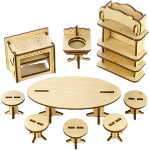 | Информация | Набор изготовлен из экологически чистого и безопасного материала - березовой фанеры, толщиной 3 мм, собирается по принципу шип-паз. Детали собираются между собой в пазы, как конструктор, без клея. Игрушка абсолютно безопасна, все края гладкие и ровные. После сборки у вас получится кухня, ее можно раскрасить карандашами или красками. Конструктор продается в разобранном виде. |