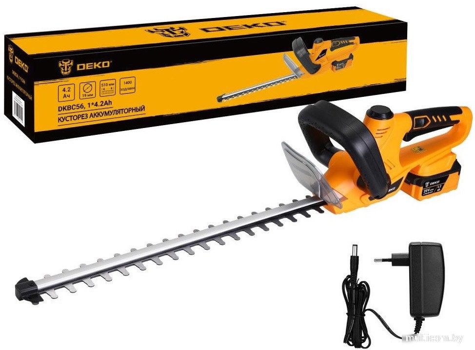 | Комплектация | - Кусторез - 1 шт. - Чехол для лезвия - 1 шт. - Аккумулятор 4,2 Ач - 1 шт. - Зарядное устройство - 1 шт. - Руководство по эксплуатации - Коробка |