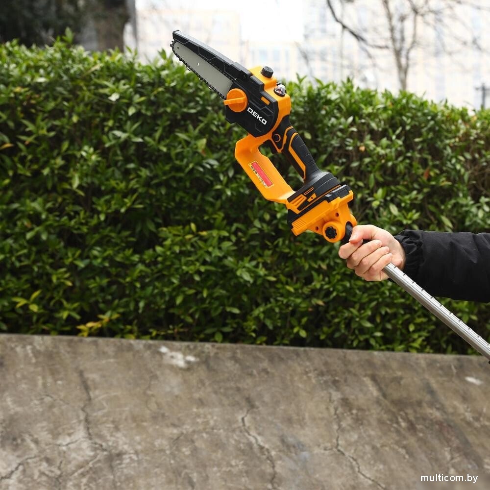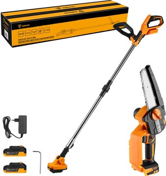 | Комплектация | - Пила (основной корпус) - 1 шт. - Телескопическая штанга с рукояткой - 1 шт. - Аккумулятор 2,0 Ач - 2 шт. - Зарядное устройство - 1 шт. - Шина - 1 шт. - Цепь - 1 шт. - Защитный щиток - 1 шт. - Шестигранный ключ - 1 шт. - Руководство по эксплуатации - Коробка |