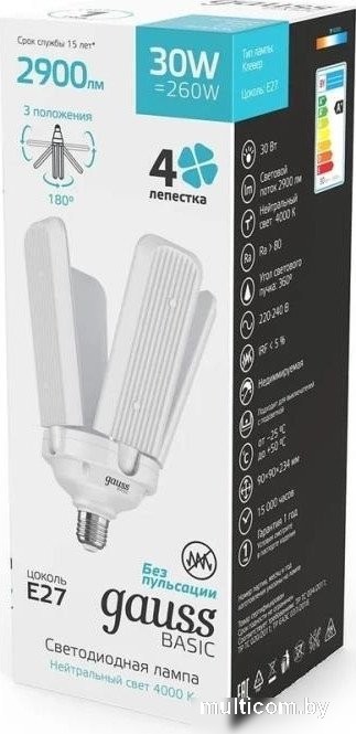 | Информация | ??Текст описания составлен при помощи искусственного интеллекта. - Светодиодная лампочка Gauss Basic 30W — это идеальное решение для тех, кто ищет яркое и экономичное освещение. С мощностью 30 Вт она обеспечивает световой поток в 2900 лм, что делает её отличным выбором для освещения как жилых, так и коммерческих помещений. - Благодаря нестандартной форме колбы и матовой поверхности, эта лампочка не только эффективно освещает пространство, но и гармонично вписывается в любой интерьер. Цоколь E27 позволяет легко заменить старые лампы на новые, не требуя дополнительных адаптеров. - Лампа Gauss Basic — это не только яркость, но и долговечность. Светодиоды обеспечивают длительный срок службы, что делает её выгодным вложением. Вы сможете наслаждаться качественным светом без частой замены ламп. - Обратите внимание, что эта лампочка эквивалентна лампе накаливания мощностью 260 Вт, что позволяет значительно сократить потребление электроэнергии и снизить счета за свет. - Выбирая светодиодную лампочку Gauss Basic, вы получаете надежное и эффективное освещение, которое отвечает современным требованиям по экономии энергии и качеству света. Не упустите возможность сделать ваш дом или офис более комфортным и уютным! |